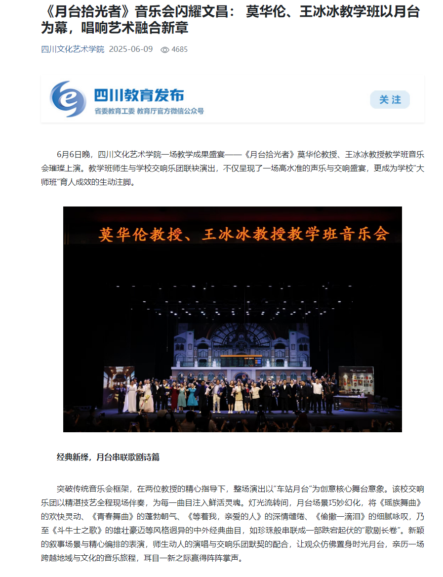 《月台拾光者》音乐会闪耀文昌:莫华伦、王冰冰教学班以月台为幕,唱响艺术融合新章 —四川站—中国教育在线 (eol.cn)