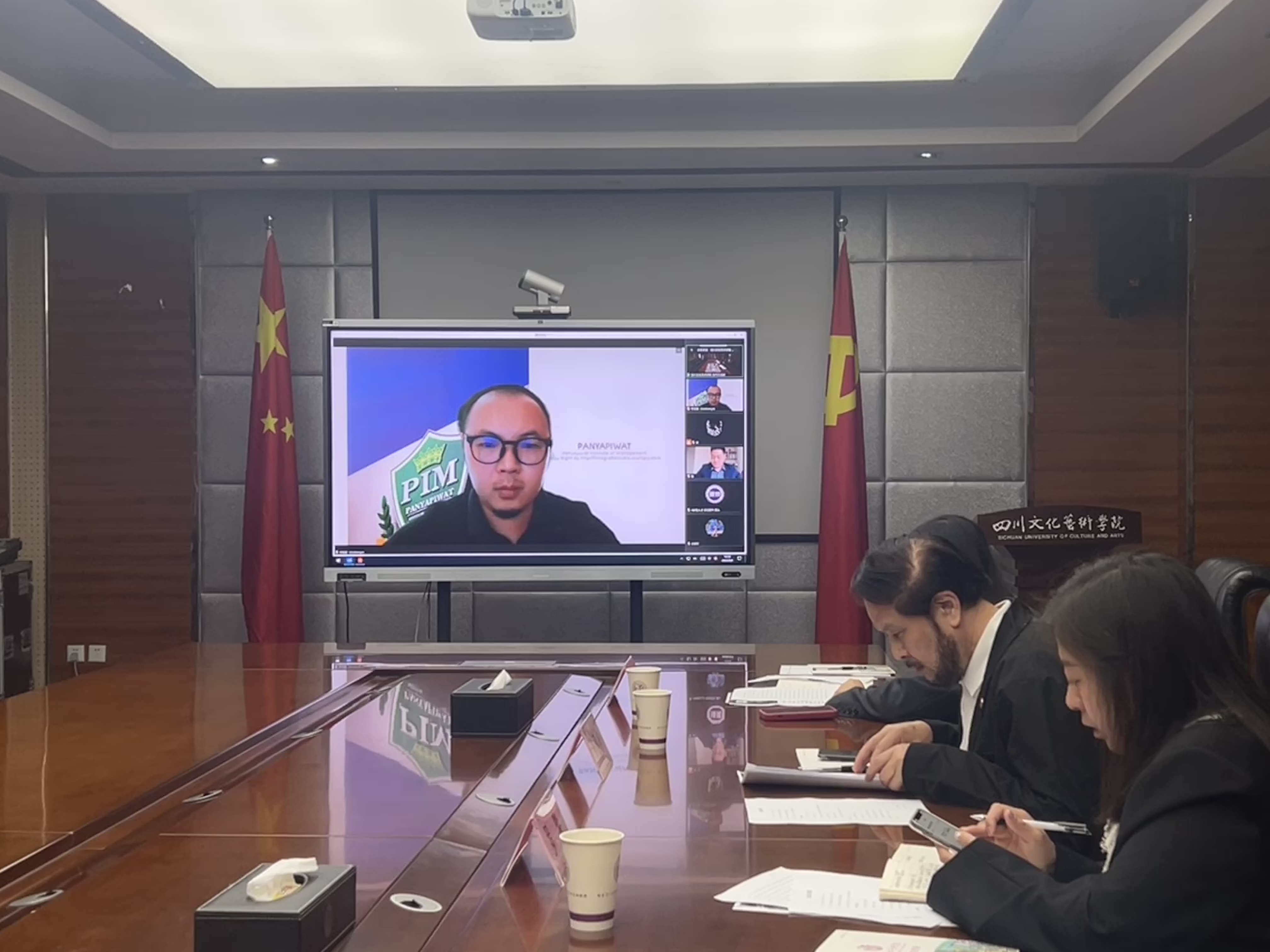 2024年4月9日下午,四川文化艺术学院与泰国正大管理学院于绵阳校区行政楼一楼会议室举行线上座谈交流会议。泰国正大管理学院校长助理李旻鑫博士、中国研究生中心吕海军教授;我校副校长欧建华、合作交流部部长钟欣纯、合作交流部部助理罗璇参加了本次会议。