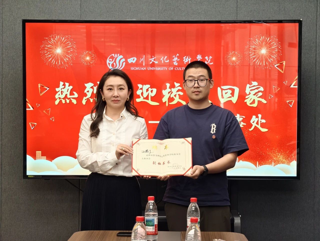 2025年5月25日,四川文化艺术学院校友会上海分会成立大会在学校上海办事处举行。此次盛会汇聚了众多校友代表共同见证这一具有里程碑意义的时刻。四川文化艺术学院校友会会长、副校长杨文勇,校友会秘书长、副校长张大汉,上海办事处办公室主任白由惠子出席大会,为校友会的成立带来了学校的关怀与支持。会议由校友会副秘书长、学生工作部部长李一主持。