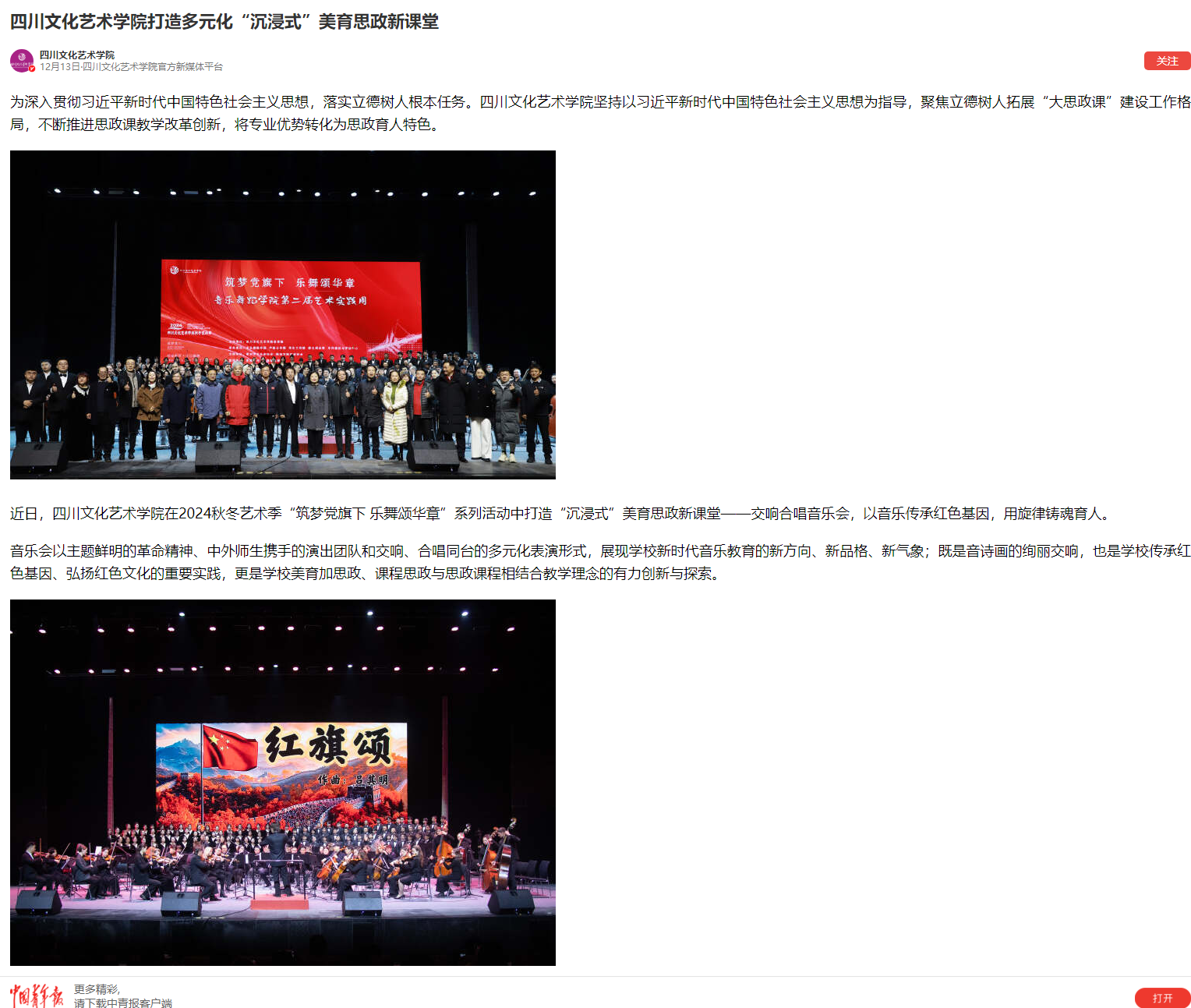 四川文化艺术学院打造“沉浸式”美育思政新课堂 (people.com.cn)