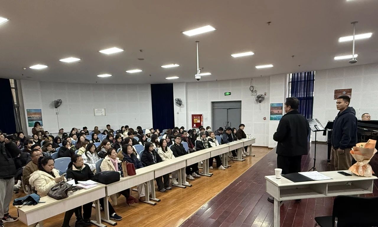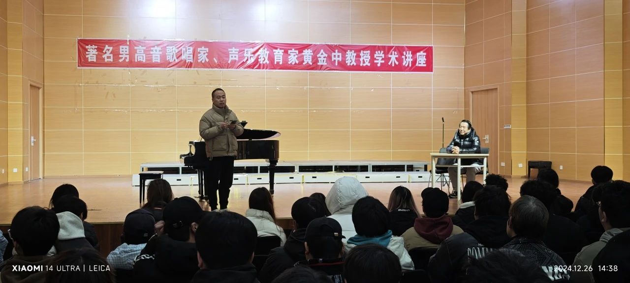 2024年12月18日、26日,著名男高音歌唱家、声乐教育家黄金中教授在我校绵阳校区113多功能厅和梓潼校区音乐厅分别举办了主题为“教师如何给学生上好声乐课”的学术讲座。学校音乐舞蹈学院百余名师生代表聆听了讲座。