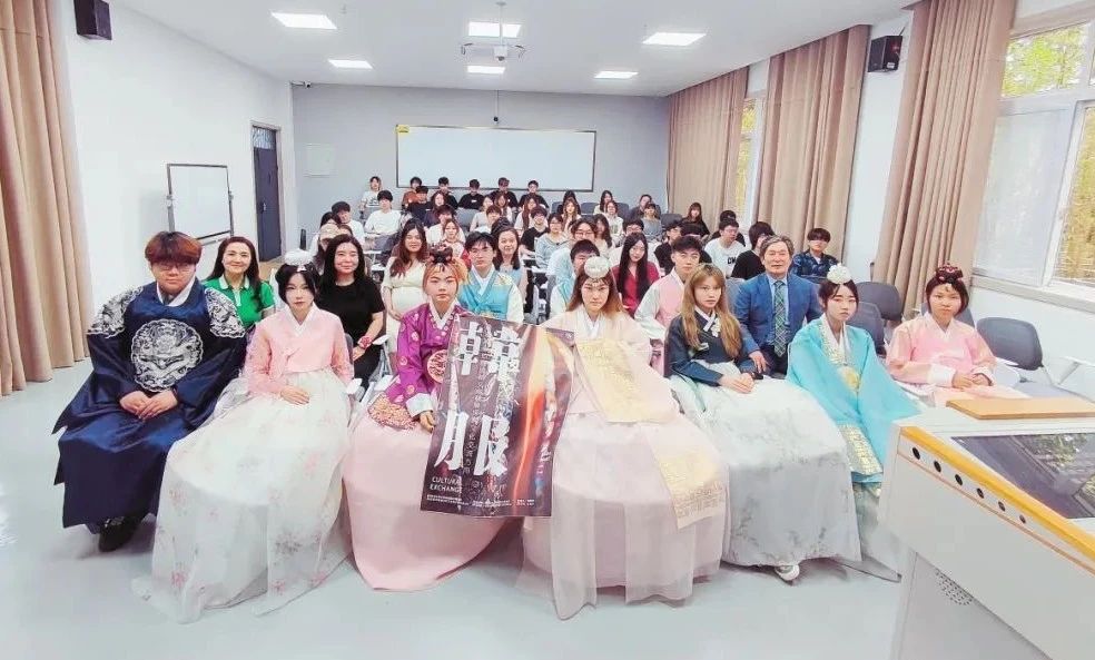 最后,我校客座教授韩珍熙于16:00-17:30,在国际交流学院104会议室为我院全体师生开展《通过韩服的历史和文化发展探索文化交流方向》专题讲座,通过此次讲座扩大了学生对韩国传统服装的认知,讲座后邀请我院约十名学生穿韩服体验走秀活动。