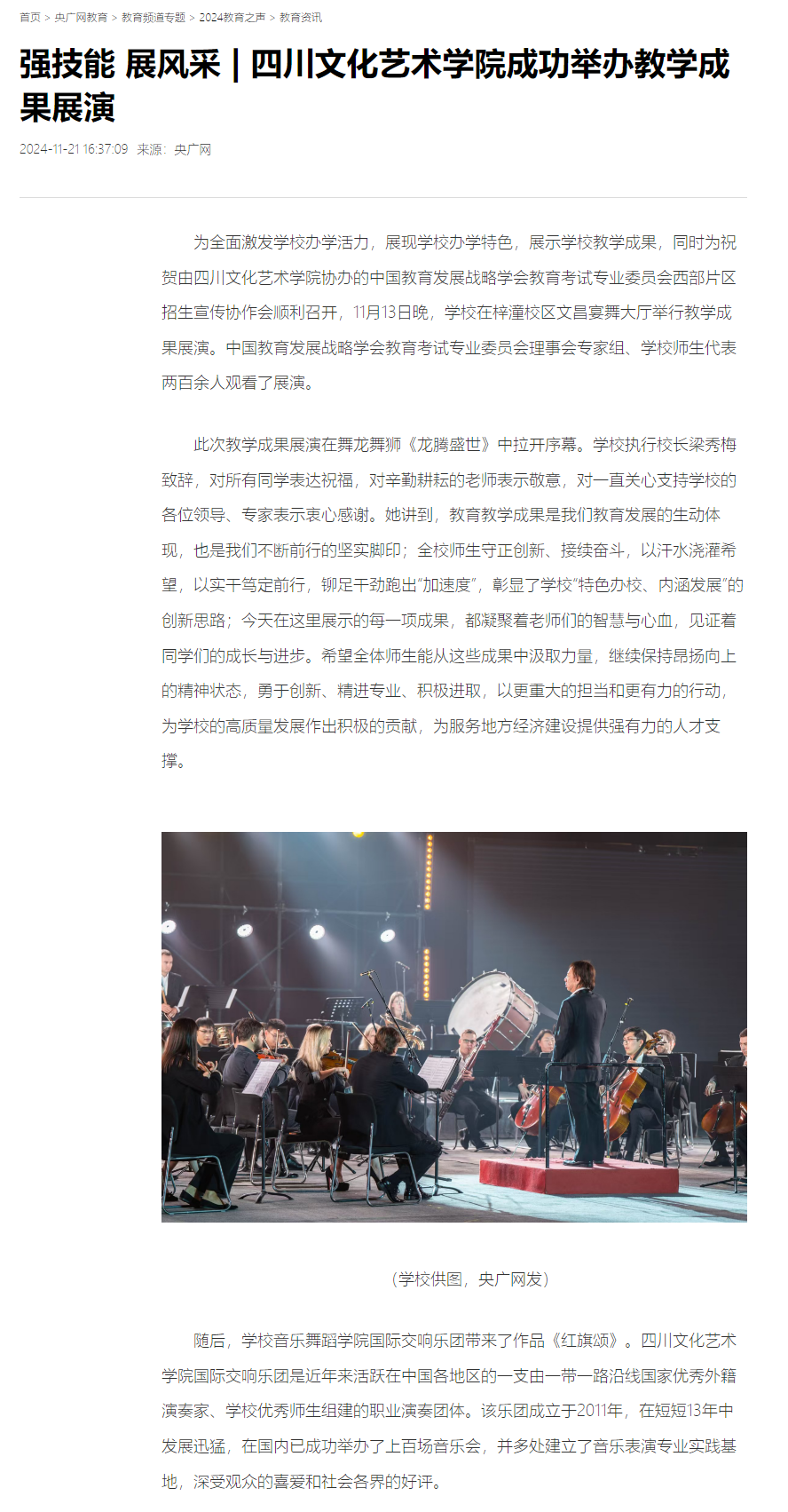 强技能 展风采 | 四川文化艺术学院成功举办教学成果展演_央广网 (cnr.cn)