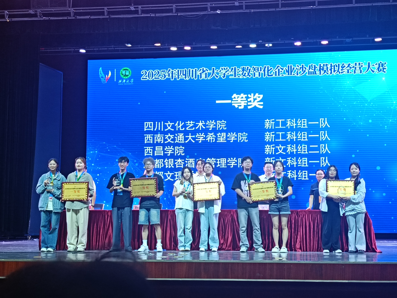 2025年7月4日-5日,由四川省教育厅主办、西华大学承办、新道科技股份有限公司技术支持的《2025年四川省大学生数智化企业沙盘模拟经营大赛》在西华大学成功举办。我校经济管理学院、大数据学院组织师生参加了本次比赛,并荣获多个奖项。