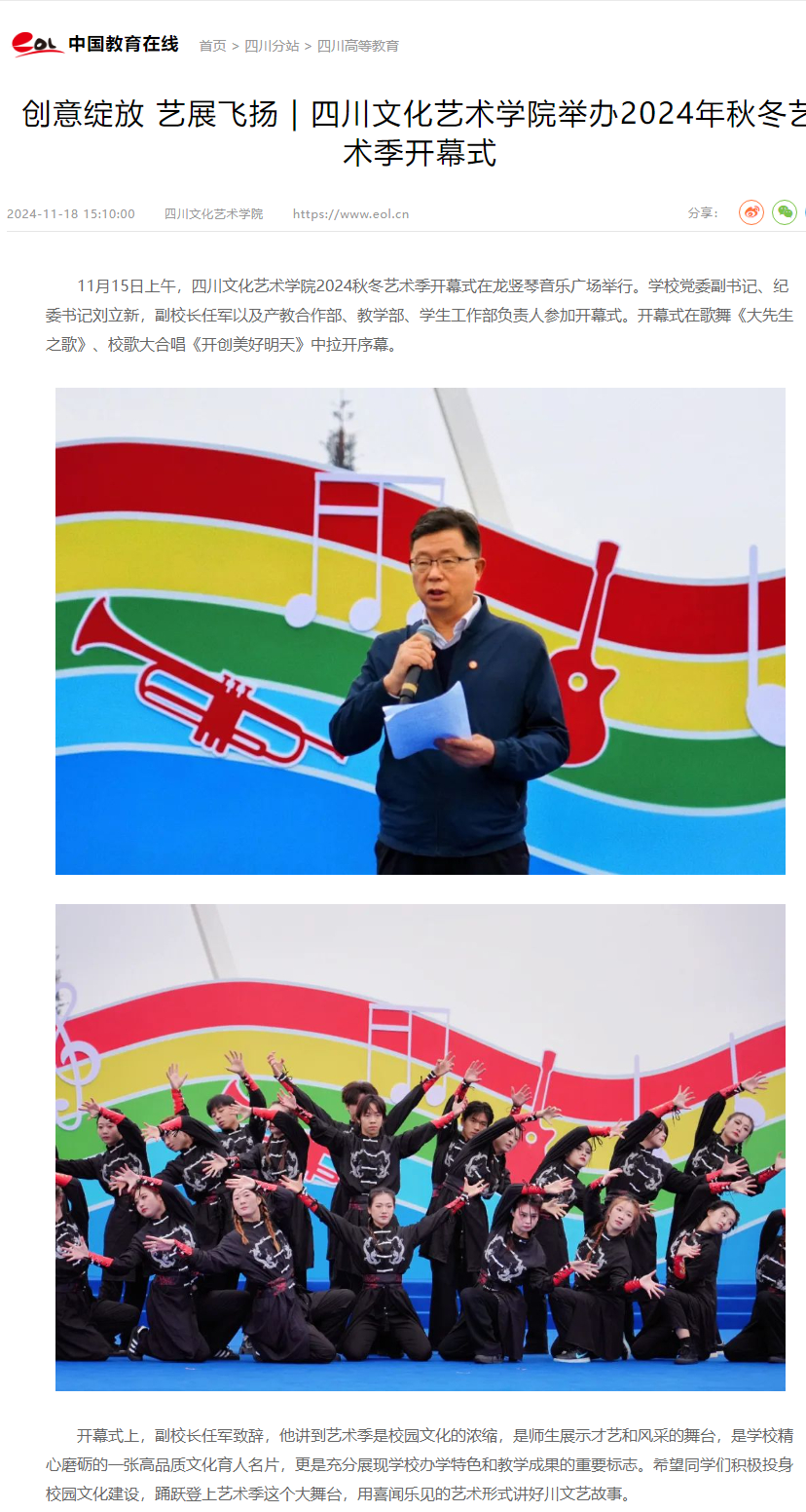 创意绽放 艺展飞扬 | 四川文化艺术学院举办2024年秋冬艺术季开幕式 —四川站—中国教育在线 (eol.cn)