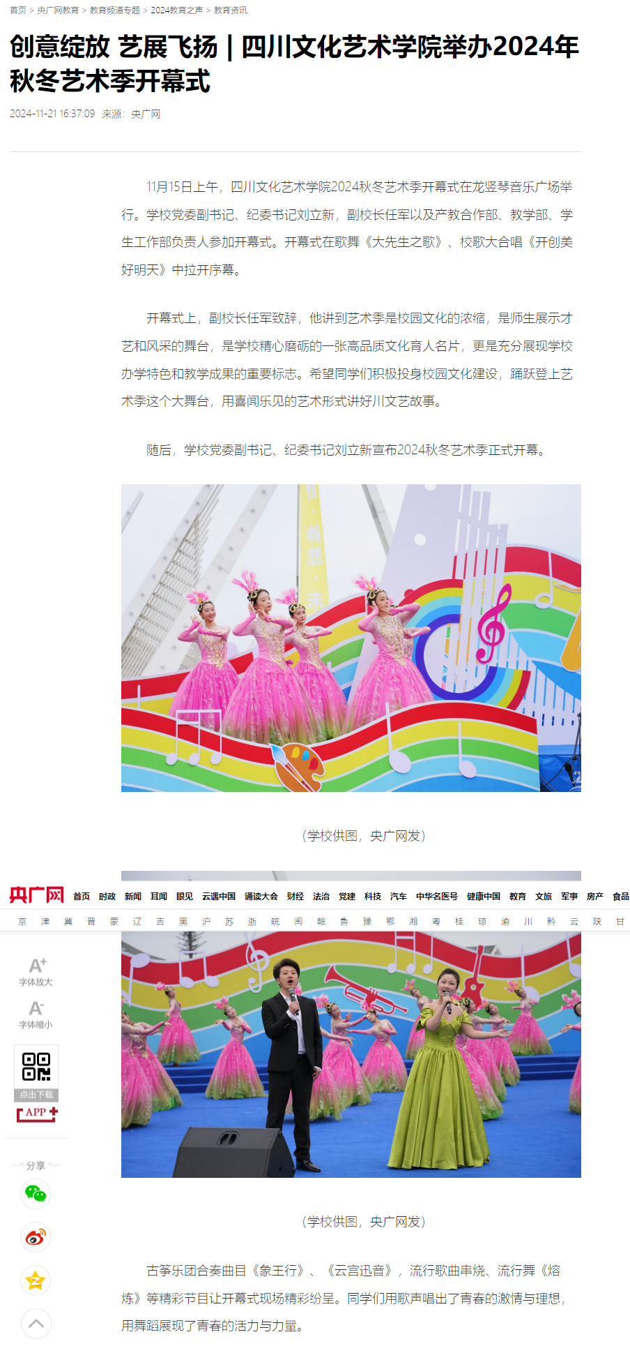 创意绽放 艺展飞扬 | 四川文化艺术学院举办2024年秋冬艺术季开幕式_央广网 (cnr.cn)