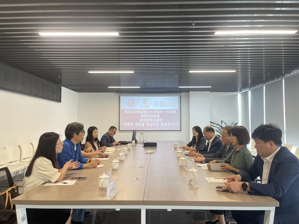 在访问期间,富川大学副校长一行先后实地考察了四川文化艺术学院绵阳校区与梓潼校区。在梓潼校区,校方代表与网易人工智能产业学院举行专题交流会。会上,双方围绕人工智能、动画及数字媒体技术专业建设展开深度研讨,就课程体系优化、教学资源整合等议题交换了宝贵意见,为后续专业建设合作提供了新思路。