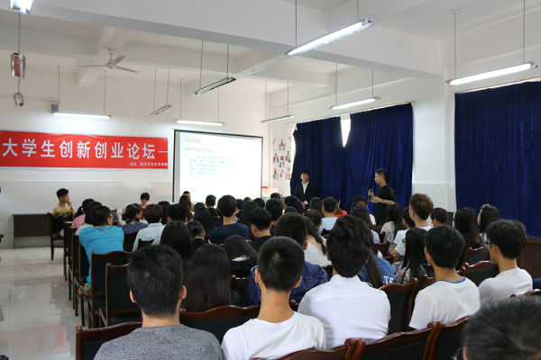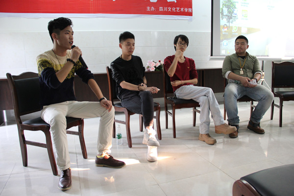绵阳博纳传播有限公司董事长牛冬冬与同学们分享了他创业过程中所经历的失败与挫折,表示创业要以自己的兴趣为主,做自己最感兴趣的事情,说干就干,在实践中摸索经验,努力积累人脉。把“优秀”当成一种习惯是他的精神支柱,力求严格要求自己;四川灰黄文化传播有限公司董事长王博辉讲到,走在创业的路上时,必须要有规划和明确的计划,干事业就必须有主动把手搞脏的创业精神;绵阳市大学生创业企业发展联合会秘书长陈俊旭、明辉传播文化有限公司董事长张明磊也相续分享了自己的故事,他们纷纷鼓励有创业想法的同学,并表示将会给予支持和帮助,有就业意愿的提供实习岗位。