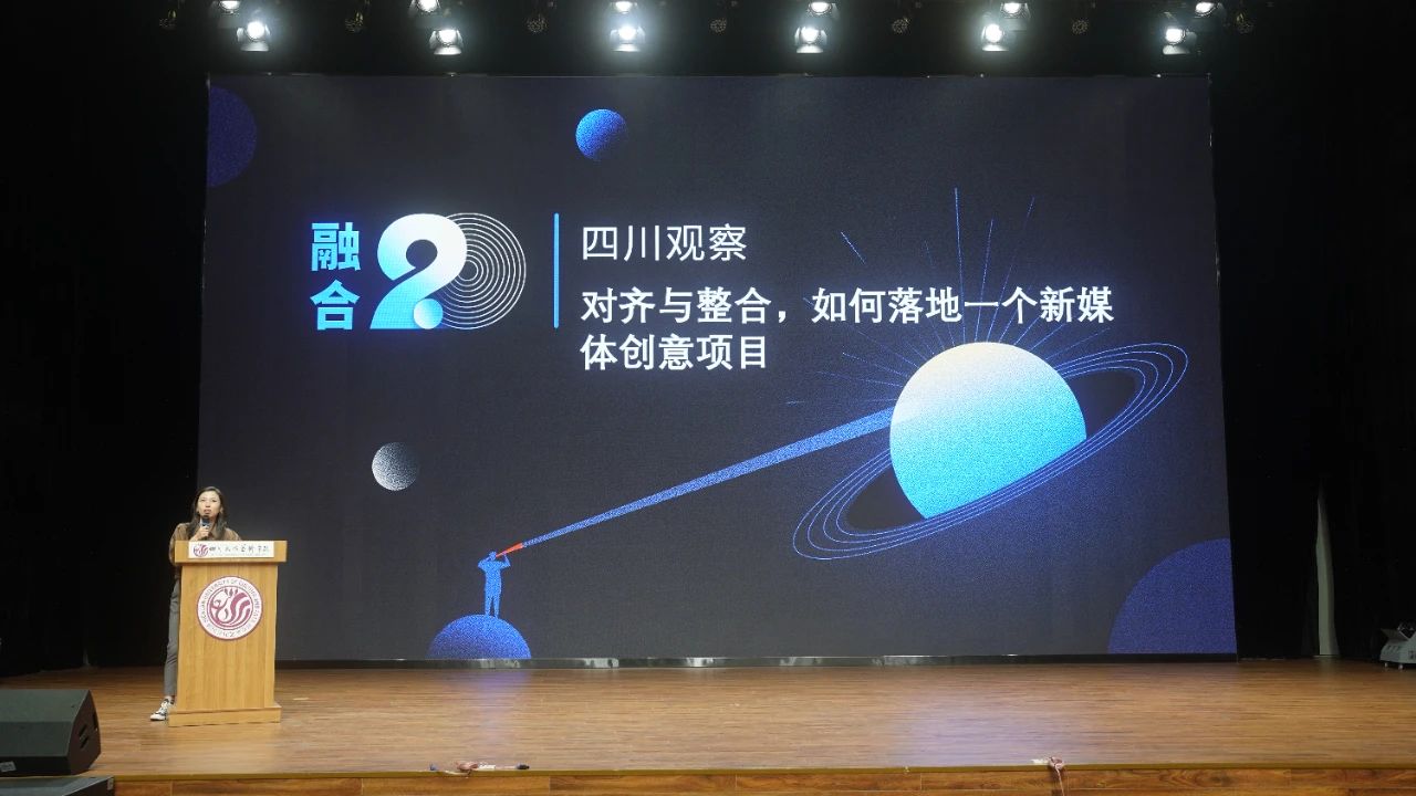 为增强大学生对网络的理解和认识,落实社会对大学生网络道德建设的重视和支持,推动形成良好网络生态,引导大学生进一步弘扬时代新风,共建网络文明,不断提升其安全用网,善于用网,文明上网、提升网络技能素养,9月21日下午3点,由四川文化艺术学院主办,新媒体中心承办的大学生网络素养提升专题讲座《对齐与整合:如何落地一个新媒体创意项目》在梓潼校区融媒体一号演播厅顺利进行。此次讲座特邀四川观察的运营项目负责人刘雪娜老师作主题讲座。新媒体中心学生助理、数字传媒学院、戏剧影视学院、美术设计学院等共计340余名师生共同聆听了讲座。讲座由新媒体中心主任龚静老师主持。