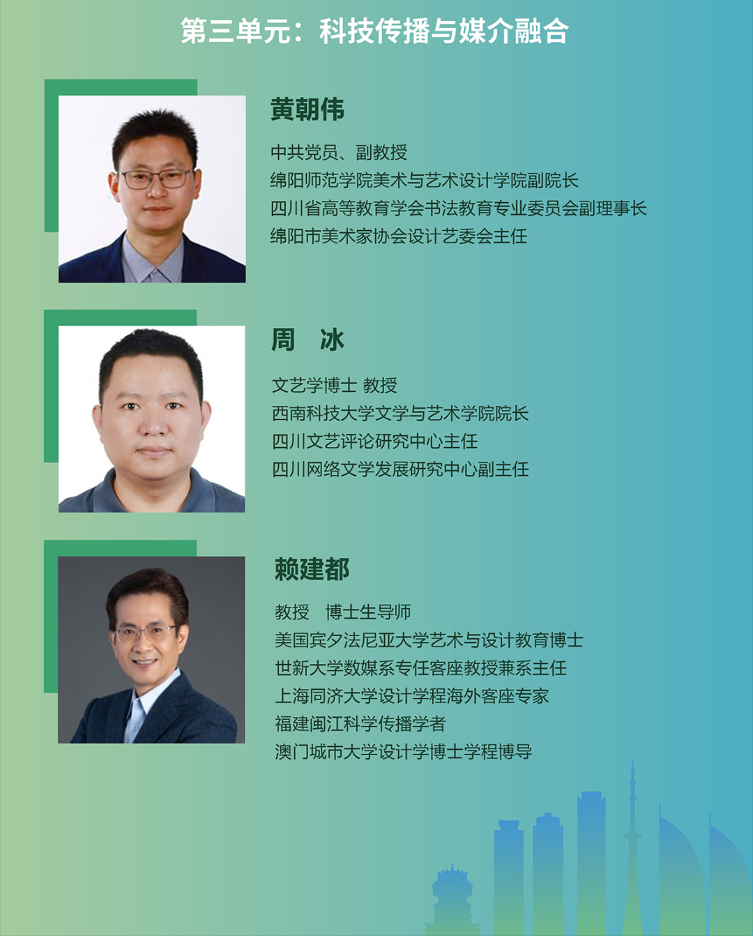 因应时代需求,四川文化艺术学院联合海峡两岸文化创意产业高校研究联盟共同发起“科技与人文国际创意大会”,紧密围绕”科技人文、产学融合、国际教育、文化创意”等主题,邀请来自国内外专家学者共同参与,探讨、分享关于科技、人文、教育、创意相关命题的新探索,促进人文、艺术、科学、教育的有机融合发展。据悉,大会将于2023年11月17日至2023年11月20日在绵召开。