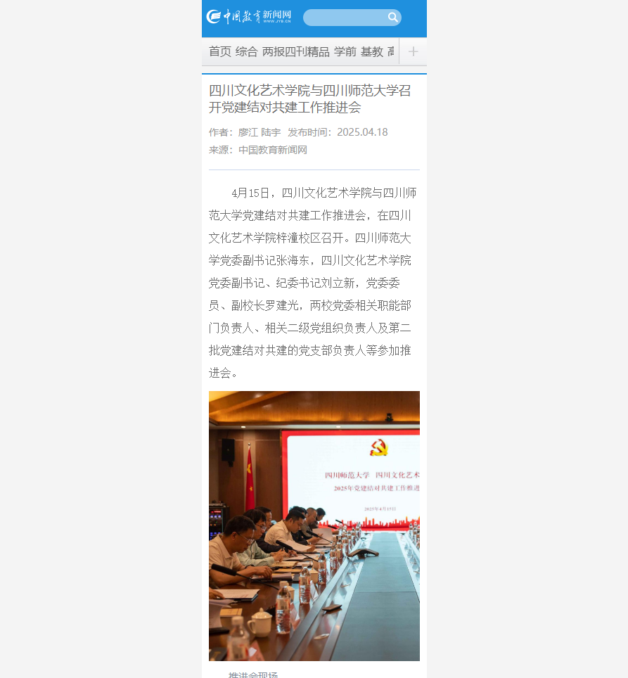 四川文化艺术学院与四川师范大学召开党建结对共建工作推进会-中国教育新闻网 (jyb.cn)