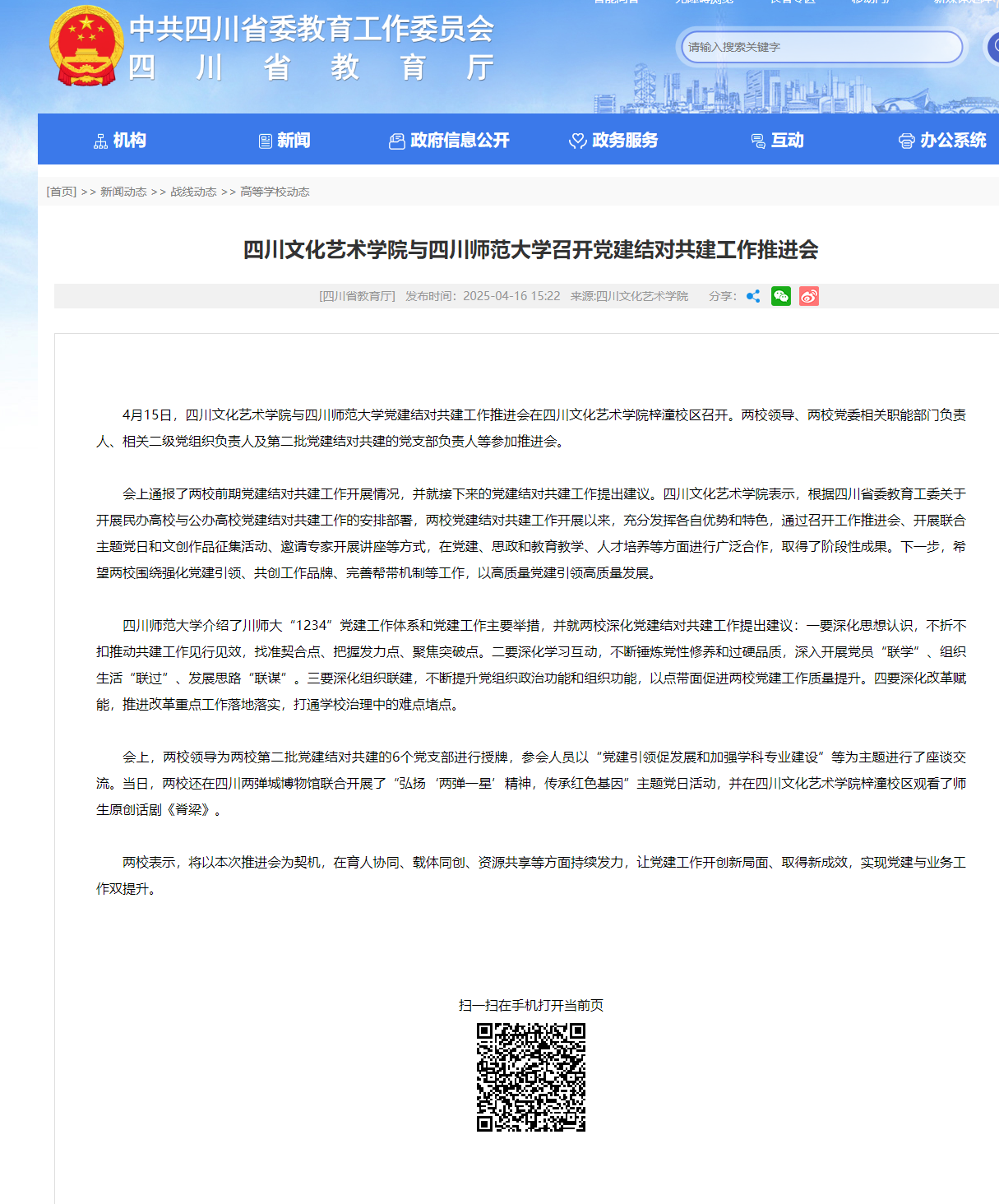 四川文化艺术学院与四川师范大学召开党建结对共建工作推进会_四川省教育厅 (sc.gov.cn)