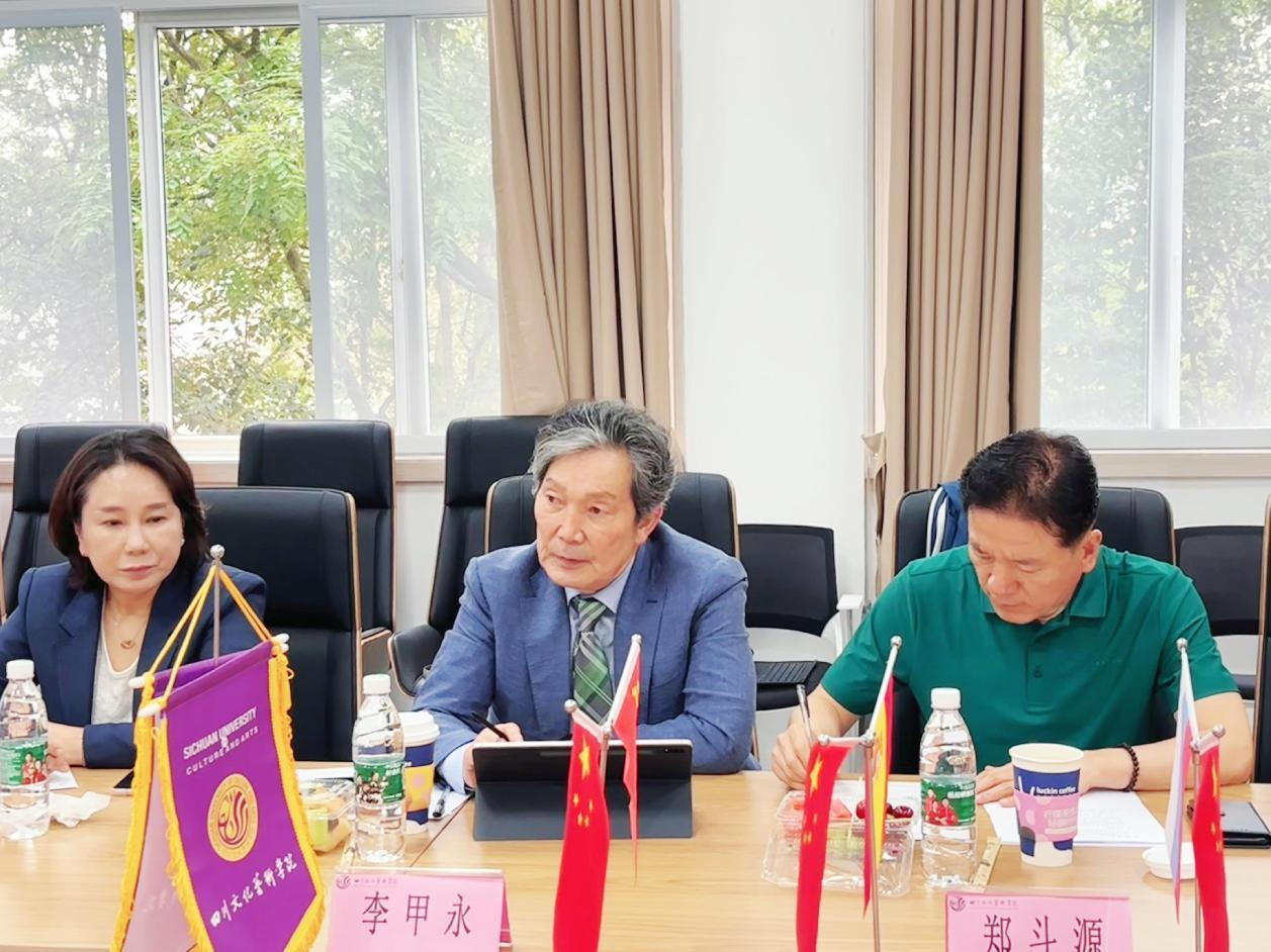 6月7日,韩国仁川大学副校长李甲永一行莅临我校进行访问交流。李甲永副校长一行在参观了绵阳校区后,双方在国际交流学院202会议室开展合作交流座谈会议,会后为我院师生开展韩服专题讲座。四川文化艺术学院党委书记助理梁宝堂、国际交流学院副院长孙勋寿、合作交流部部长兼国际交流学院副院长钟欣纯、国际交流学院相关负责人参加了本次会议。本次会议由合作交流部部长兼国际交流学院副院长钟欣纯主持。