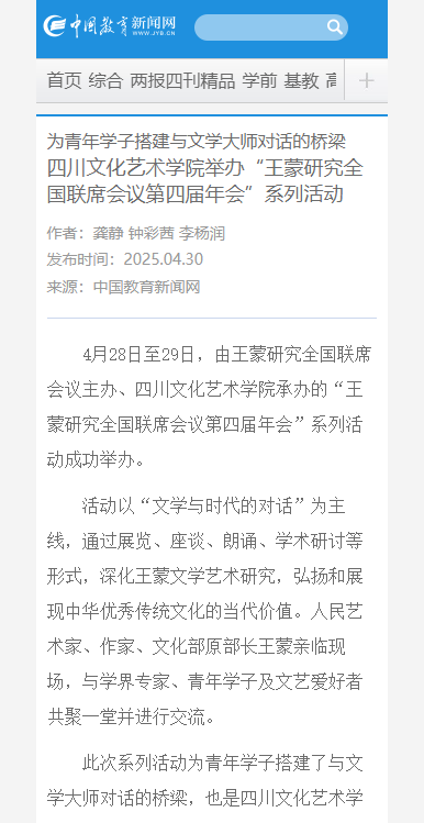四川文化艺术学院举办“王蒙研究全国联席会议第四届年会”系列活动-中国教育新闻网 (jyb.cn)