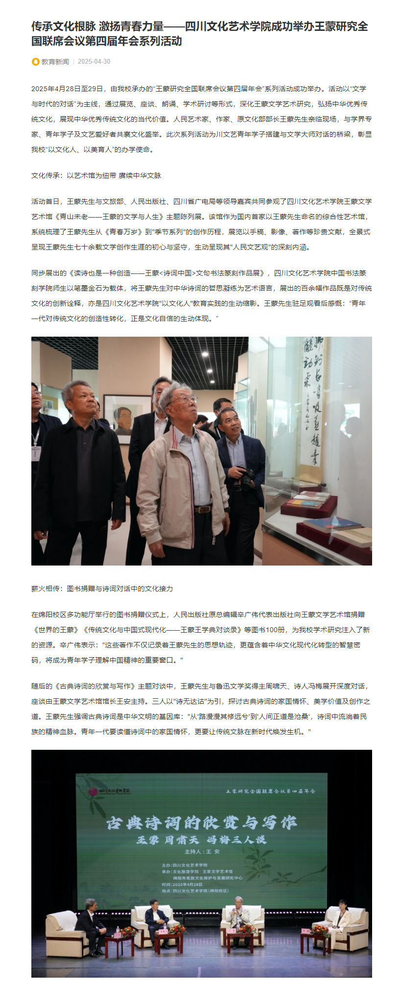 传承文化根脉 激扬青春力量——四川文化艺术学院成功举办王蒙研究全国联席会议第四届年会系列活动_腾讯内容开放平台 (qq.com)