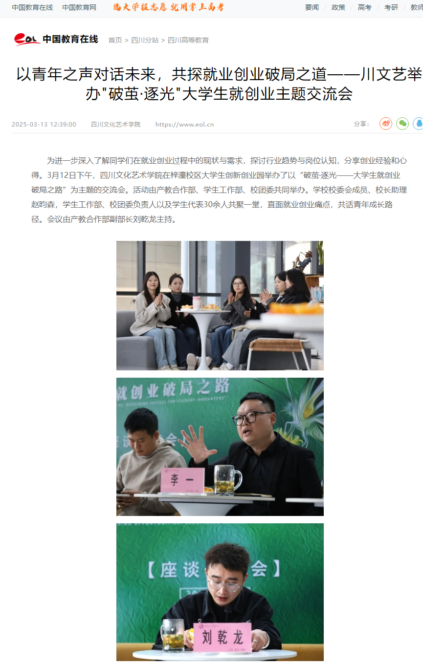 以青年之声对话未来,共探就业创业破局之道——川文艺举办"破茧·逐光"大学生就创业主题交流会 —四川站—中国教育在线 (eol.cn)